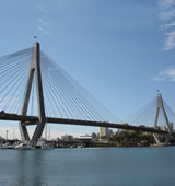 The Anzac Bridge (then known as the Glebe Island Bridge) represents one of the newest landmark bridges in Australia and is now a major feature of the Sydney skyline. Located in the Pyrmont area of Sydney this 350m, central span, cable stayed bridge links Victoria Rd with Pyrmont, Ultimno and the Sydney CBD. It is the longest bridge in Australia to use the cable stayed structural form.